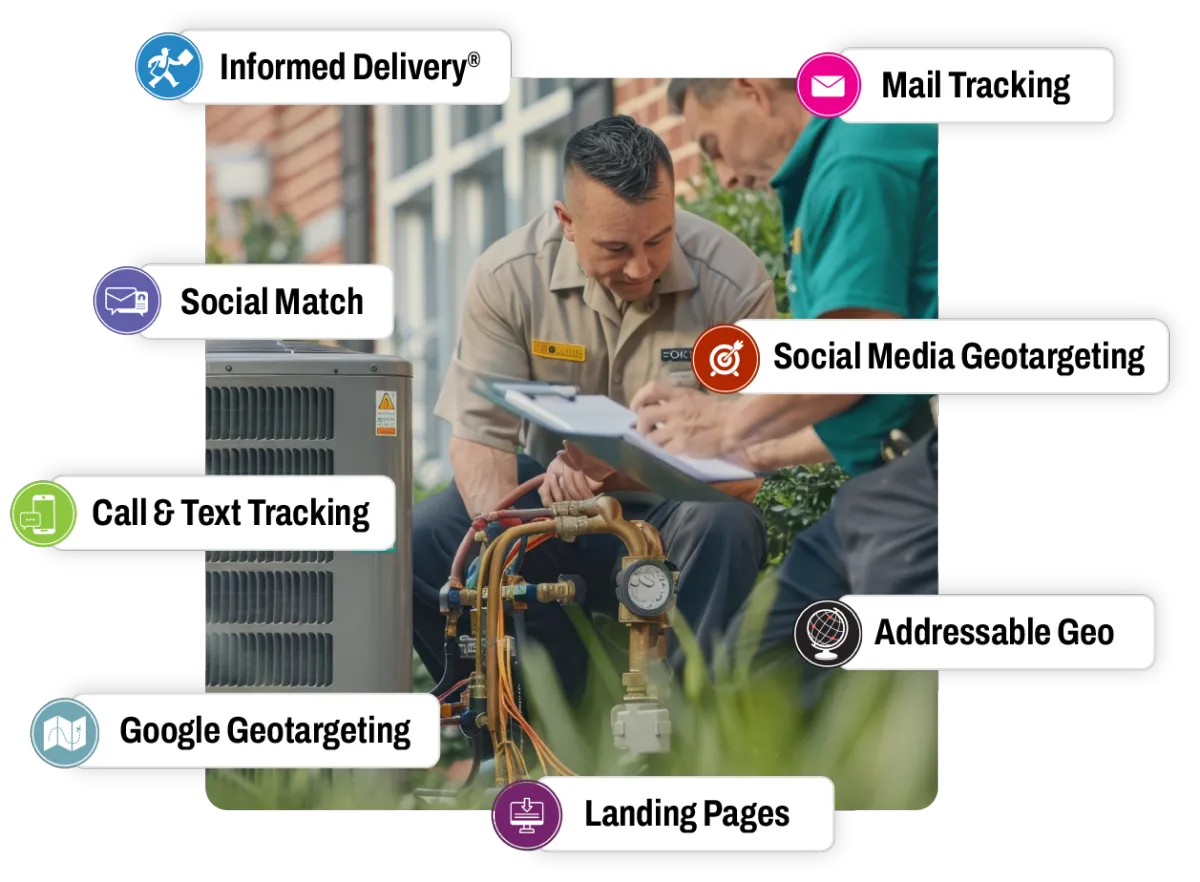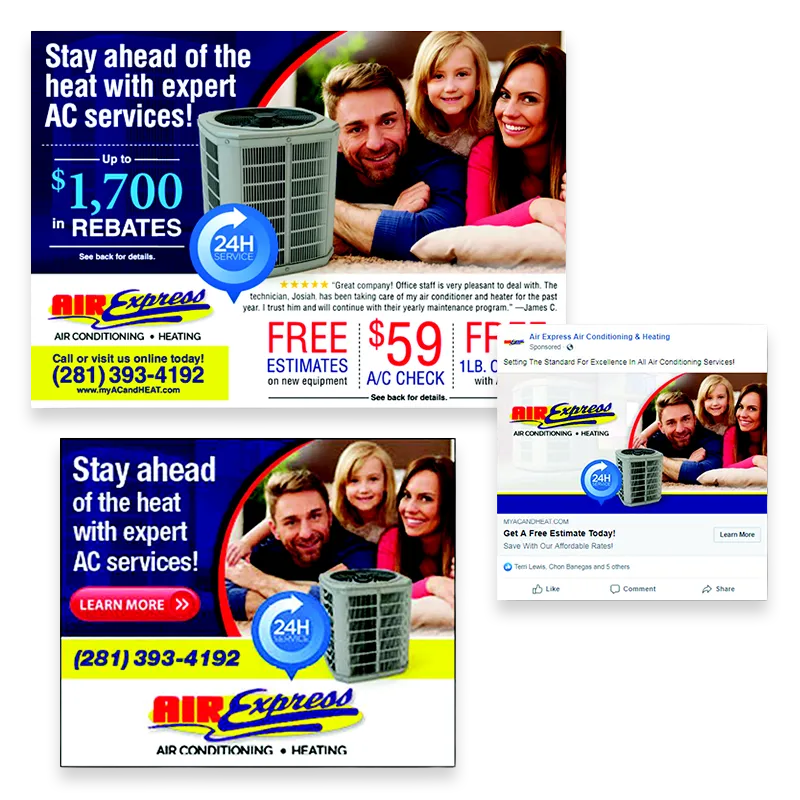 Campaign Details: A heating & A/C company wanted to increase their client base but knew they needed more than just a traditional direct mail campaign to grab the attention of homeowners in their area. By integrating their mailed postcards with digital technologies such as SocialMatch, Call & Text Tracking, Online Follow-up, and Social Media Follow-up, they quickly became slammed with non-stop business. They mailed 10,000 cards the first month, then 5,000 per month for 5 months, knowing that consistency and repetition are keys to an effective campaign. Another hallmark of the campaign’s success was their valuable offers that enticed new clients, such as Free Estimates on New Equipment, $59 A/C Check, Free 1lb. of Freon with A/C Check, and up to $1,700 in Rebates. The campaign yielded 50-75 new clients per month, which resulted in $75,000-$157,500 of new revenue per month.